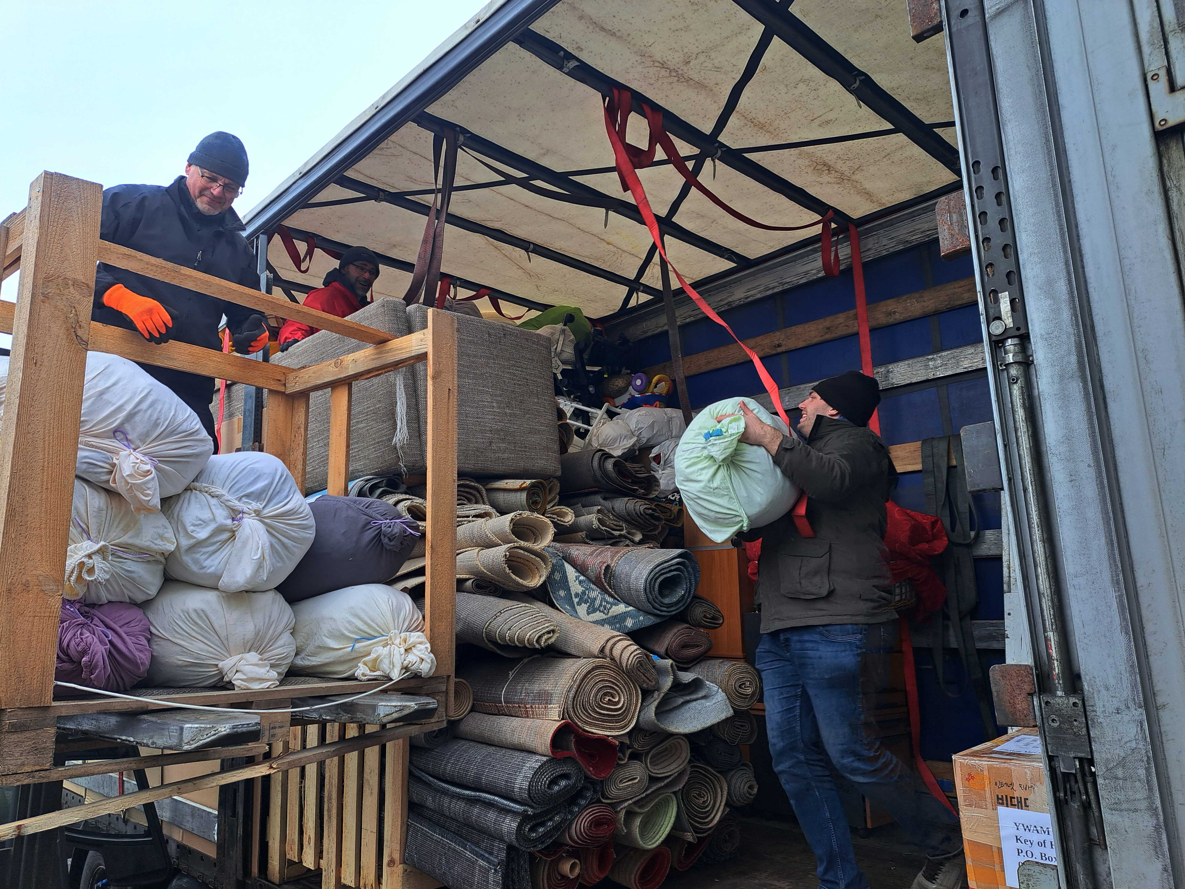 38. Hilfstransport beladen