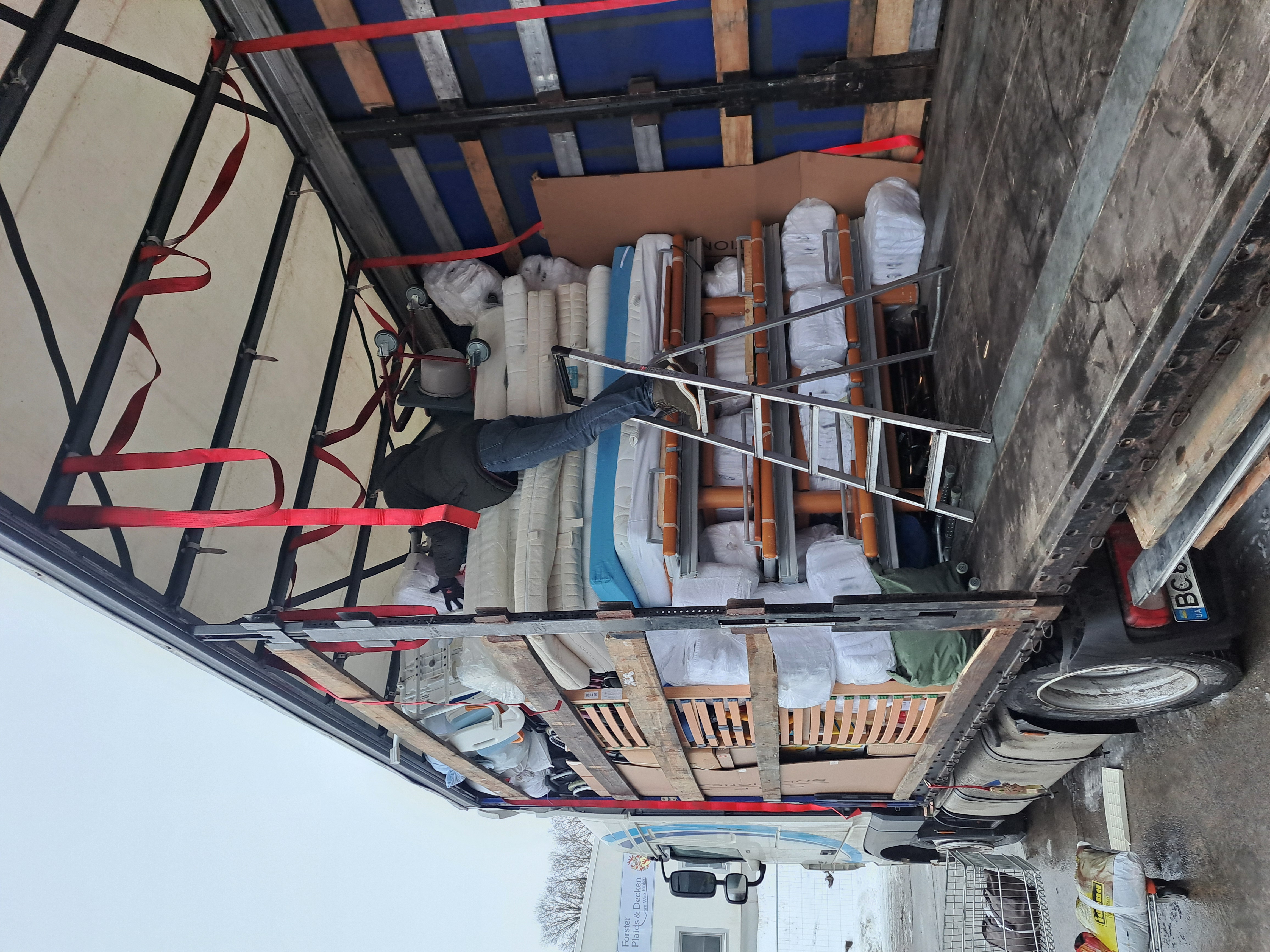 Besonders gefragt sind aktuell warme Kleidung, Federbetten und Decken und alles, was angesichts zerstörter Heizkraftwerke und fehlenden Wassers benötigt wird. Und so wurden am Dienstag und Mittwoch mehr als 400 Kartons mit Kleidung, Schuhen, Lebensmitteln, Windeln und vielem mehr auf den ukrainischen Lkw verladen. Auch rund 100 neuwertige Teppiche aus einer Betriebsauflösung wurden mit verladen. "Aus einem Kinderheim wissen wir, dass die Teppiche sehr hilfreich sind, wenn die Menschen immer wieder aufgrund von Angriffen in die kalten Bunker müssen. Es ist einfach schrecklich, was vielen Menschen in der Ukraine gerade widerfährt", so der Vereinsvorsitzende Thomas Kretschmann.