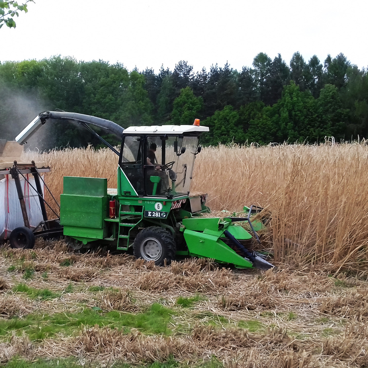 Miscanthus wird auch als Chinaschilf oder Elefantengras bezeichnet. Das Gewächs wird einmal gepflanzt und kann dann über 20 Jahre lang geerntet werden. Die Pflanze lässt sich als Mix aus Maispflanze, Schilf und Bambus beschreiben. Die Ernte erfolgt um Ostern herum nach dem letzten Frost und kurz bevor die Pflanze wieder neu austreibt. Dann hat der vertrocknete Teil der Pflanze die geringste Feuchtigkeit und verholzt. Die Ernte erfolgt in der Regel mit einem Maisernter.